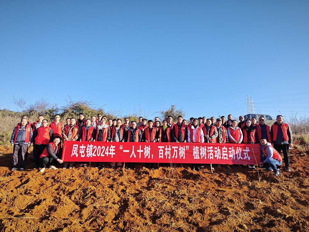 为全面落实好全县“一人十树、百村万树”推进会议精神,2024年1月3日上午,凤屯镇组织全体干部职工开展“一人十树、百村万树”行动月暨2024年义务植树活动。