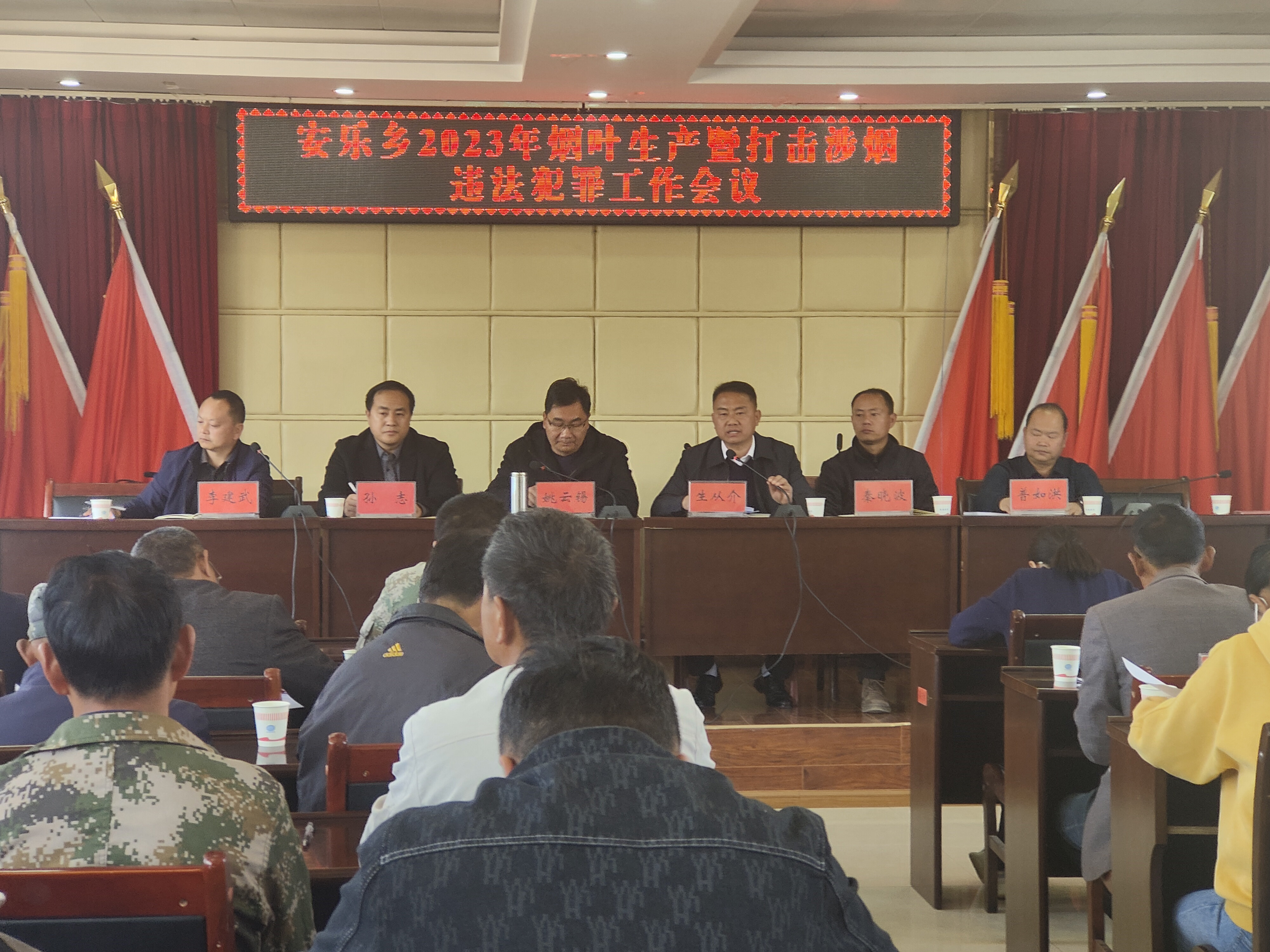 2023年2月10日,安乐乡召开2023年烟叶生产暨打击涉烟违法犯罪工作会议,传达全县烟叶工作会议精神,安排部署今年烟叶生产各项工作任务。乡党政班子成员、各村挂点组长、种烟村委会主任、烟叶站工作人员、烟农代表共计40多人参加会议,会议由乡人大主席生从介主持。