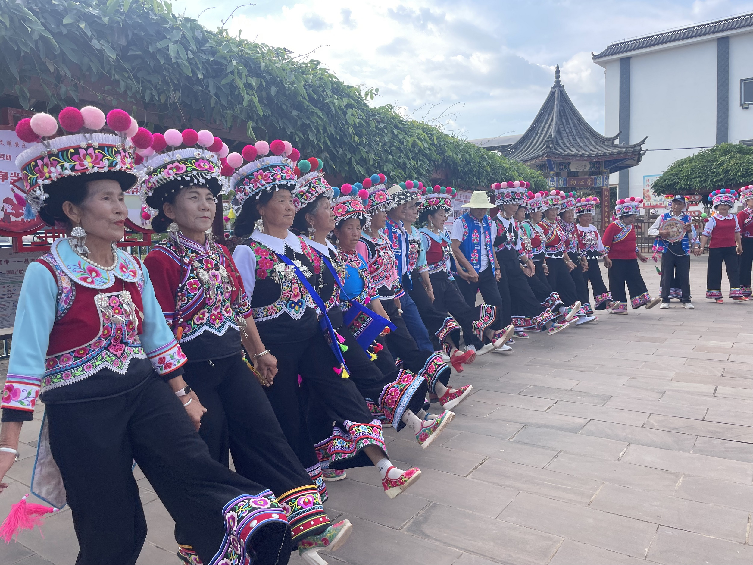 街头巷尾,随处可见群众弹起弦子跳起脚的场景,欢快的左脚歌舞和不间断的弦子声、二胡声营造出了左脚舞狂欢的浓厚氛围,大家在尽情欢舞跳跃中感受着“千年左脚舞”的独特魅力。