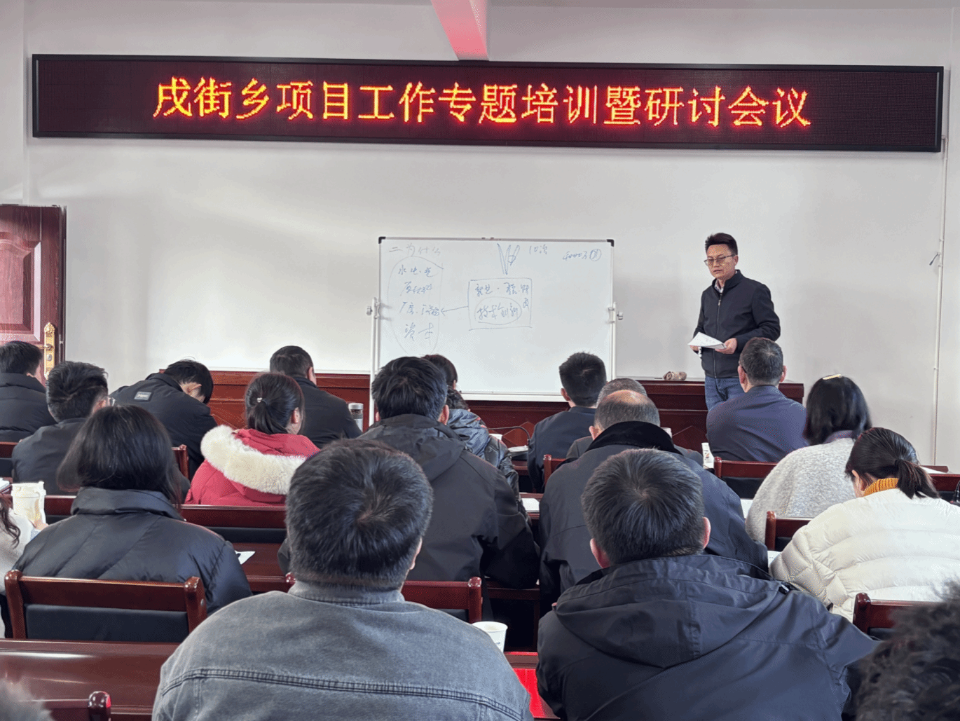 为深入贯彻落实省、州、县关于高质量发展和项目工作的决策部署,全面提升全乡干部谋划、推动、管理项目的能力水平,树牢抓项目、拼项目的鲜明导向,2026年1月7日,戌街乡召开项目工作专题培训暨研讨会议。县发展和改革局局长代银宝到会指导并作专题培训,乡党政班子成员,乡机关各办(中心、队)负责人、乡经济发展办全体工作人员、乡农业农村发展服务中心相关同志以及各村党总支书记共计40余人参加会议。