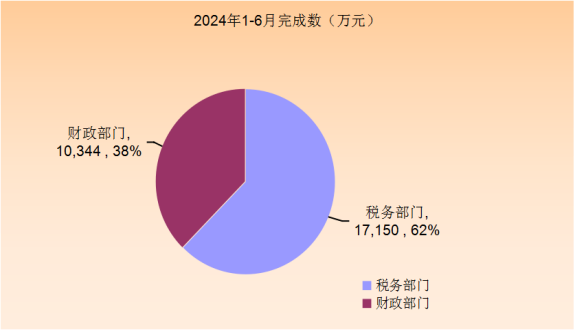 2024年1-6月,税务部门完成一般公共预算收入17,150万元,完成全年预算42,499万元的40.4%,比上年16,420万元增收730万元,增长4.4%;财政部门完成一般公共预算收入10,344万元,完成全年预算6,709万元的154.2%,比上年10,446万元减收102万元,下降1%。