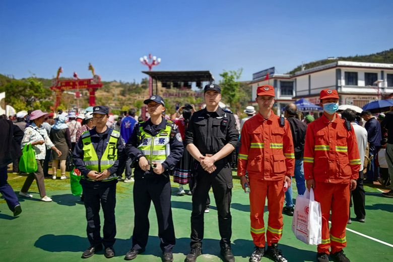 3月26日,各族群众欢聚牟定县蟠猫乡农历“二月八”民族传统节日活动现场。牟定县公安局以“万无一失”的标准全程护航,用藏蓝身影筑牢平安防线,让节日的欢腾与安全相伴。