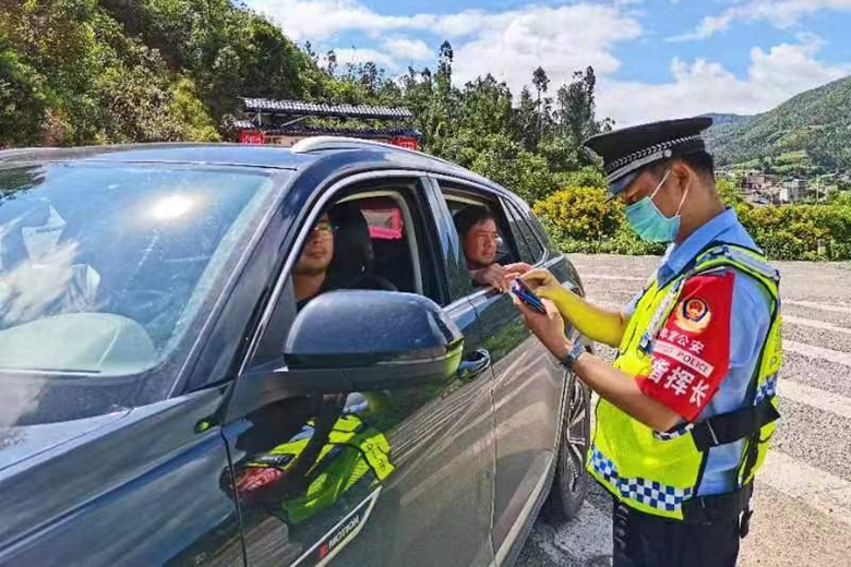 路面执勤民辅警在查处交通违法行为的同时, 利用典型事故案例面对面对违法驾驶人进行警示教育,积极宣传交通违法行为的危害性,筑牢群众交通安全防控思想弦,树立安全驾驶、文明行车的意识。