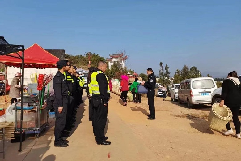 农历二月十五日是牟定县牟定县凤屯镇腊湾村委会与姚安县前场镇新民村委会一年一度的民族团结联欢日。为确保辖区群众度过一个欢乐祥和的节日,牟定县公安局周密部署、精心组织,全面落实各项安保措施,圆满完成各项安保任务。