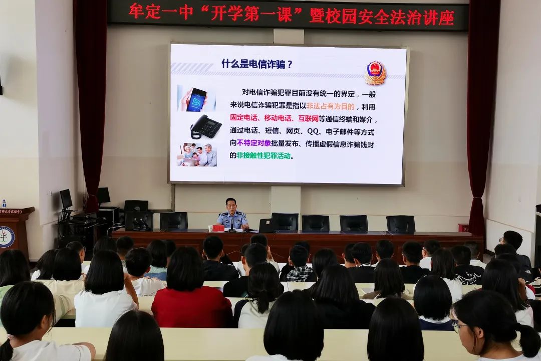 “同学们,如果遇到有人花言巧语、危言恐吓要求转账汇款等情况,一定要记住‘不听、不信、不转账、不汇款’,如有疑问不确定对方是不是在诈骗时,可以拨打110或96110进行咨询。”近日,牟定一中“开学第一课”暨校园安全法治讲座上,来自牟定县公安局的反诈宣传民警结合实际案例,为全体师生带来了开学“反诈第一课”。