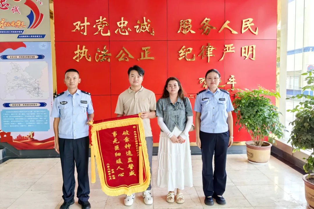 报案人拿着一面锦旗送到派出所