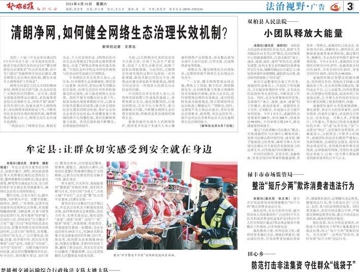 夏季治安打击整治行动开展以来,牟定县公安机关不断强化底线思维,始终聚焦群众急难愁盼,用担当作为、实绩实效说话,强化巡防“密度”、清患“深度”、宣防“广度”、服务“厚度”,带着感情、带着责任、带着温度处置每一起警情,为企业追回损失10余万元,向20余名群众集中发还破案追回的车辆、自行车、现金等,收到群众送来锦旗10余面,刑事治安警情、矛盾纠纷持续下降,赢得了群众信任,用实实在在的行动擦亮了警徽盾牌,也让巡逻执勤的人民警察成为最美风景。