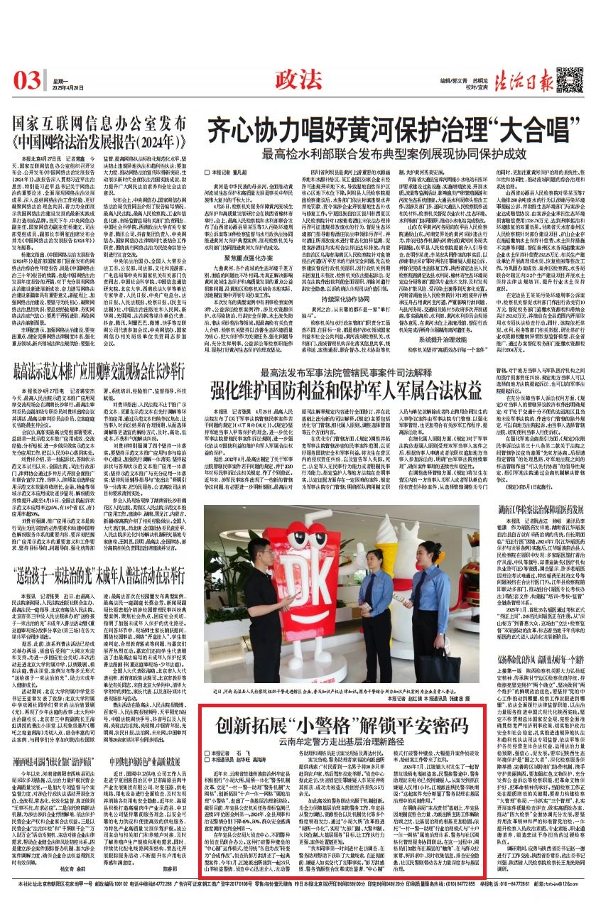 近年来,云南省楚雄彝族自治州牟定县积极推行“小局大所、局所一体化”警务机制改革,立足“一村一警一助理”警务机制“大网格”,创新拓展“十户一体一网格”属地治理“小警格”,走出了一条基层治理新路径。截至目前,牟定县公安机关任务指标监测已连续5年位居全州第一。2024年,全县刑事和治安警情分别下降49%、50%,群众安全感满意度测评位列全州第一。