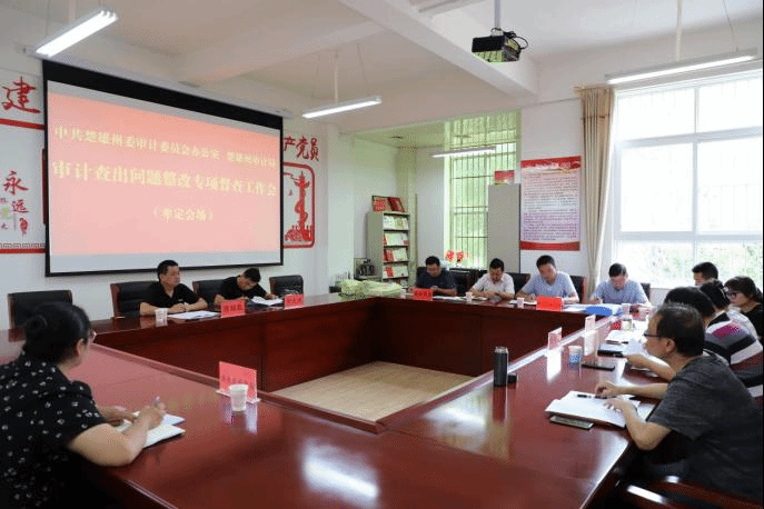 2022年7月18日上午,楚雄州审计局副局长陈绍能一行2人到牟定县审计局专项督查云南省原省委书记陈豪同志、原省长阮成发同志经济责任审计查出问题整改工作,县政府办姚旭东、县自然资源局、县林业和草原局、县农业农村局、县审计局共同参加了督查工作会。会上县政府办姚旭东汇报了审计查出问题整改情况,重点汇报了已整改的问题及正在整改问题的详细情况。并表明下一步工作计划,将以此次审计问题整改督查为契机,按照督查组工作要求,认真抓好各级审计发现问题整改工作,通过建章立制、案例警示、查缺补漏等工作,从源头上保障各项工作规范有序开展。并要求参会单位进一步加大整改力度,确保在2022年年底前正在整改的问题销号清零。在听取汇报查看资料后,楚雄州审计局副局长陈绍能同志对审计整改工作及今后工作开展提出三点意见:一是做好统筹协调工作。项目开展前,各部门间做好衔接工作,认真规划,紧密配合,从源头上杜绝问题的发生;二是依法依规开展工作,并及时汇报工作开展情况,坚决不做违法违规的事,将依法、依规作为开展工作的第一原则;三是强化整改落实,认真分析存在问题的原因,举一反三、立行立改,确保审计发现问题全部清零。