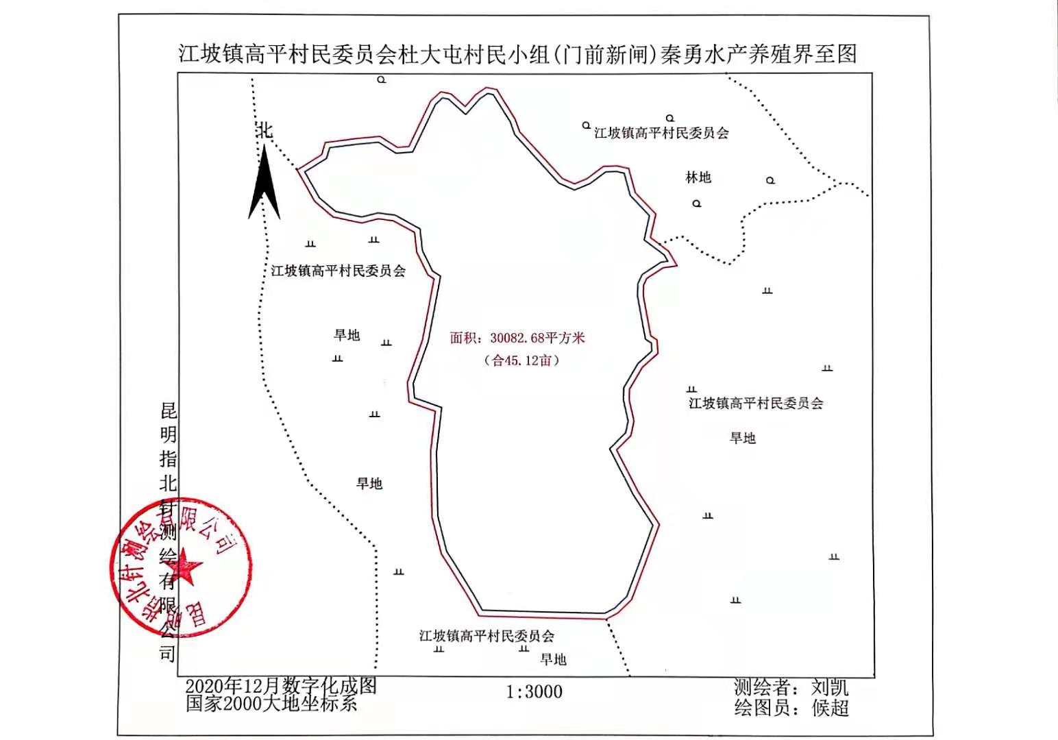现将秦勇申请杜大屯村门前新闸《水域滩涂养殖证》予以公示。该申请养殖水域为牟定县江坡镇高平村委会杜大屯村管理、以农业灌溉为主的水库,位于牟定县江坡镇高平村委会杜大屯村,水域面积3.0082公顷,申请池塘式放养水产养殖,地址、范围见《门前新闸界至图》。