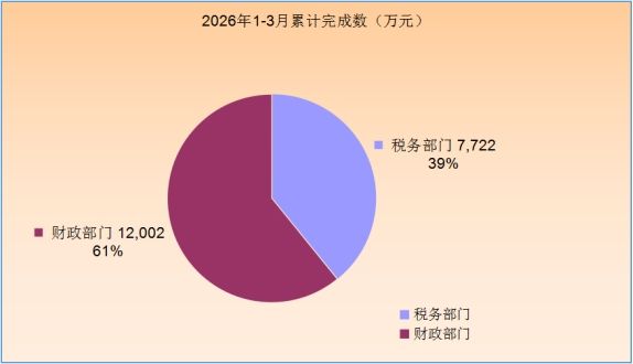 2026年1-3月,税务部门累计完成一般公共预算收入7,722万元,完成全年预算44,366万元的17.4%,比上年17,143万元减收9,421万元,下降55%;财政部门累计完成一般公共预算收入12,002万元,完成全年预算9,262万元的129.6%,比上年1,833万元增收10,169万元,增长554.8%。
