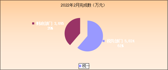 2022年2月税务部门完成一般公共预算收入5,824万元,比上年同期5,704万元增收120万元,增长2.1%。