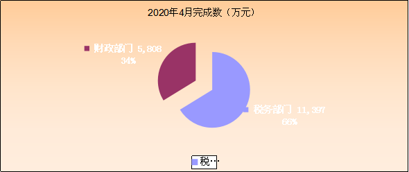 2020年4月一般公共预算收入累计完成17,205万元, 比上年同期16,021万元增收1,184万元,增长7.4%,其中:税收收入累计完成9,597万元,比上年同期8,493万元增收1,104万元,增长13%,非税收入累计完成7,608万元,比上年同期7,528万元增收80万元,增长1.1%。