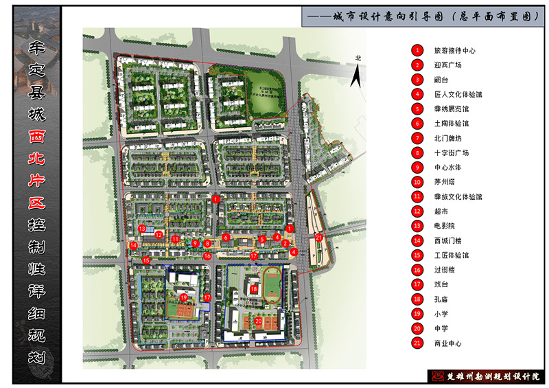 本规划包括两个层面的内容,第一层面是西北片区的发展规划,包括片区功能结构规划、土地利用规划以及市政公用设施规划等;第二层面是地块开发控制导则,包括通则(地块开发控制指标)及细则(片区及重点地块的城市设计引导)。