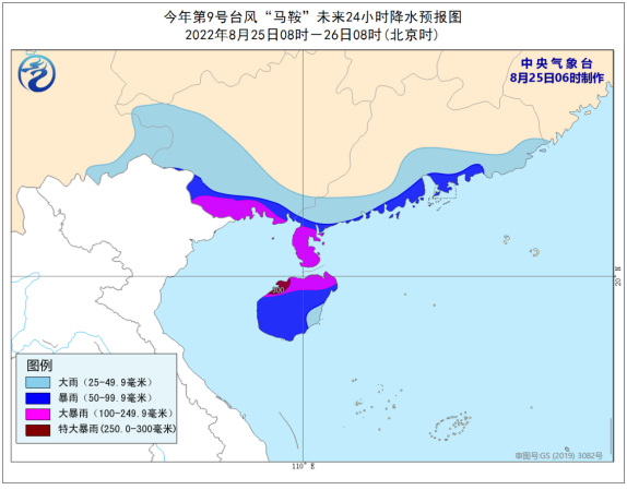 图3 台风“马鞍”未来24小时降水预报图(8月25日08时-26日08时)