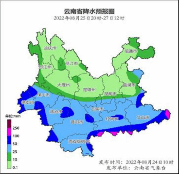 8 月 26 日:文山南部、红河南部、普洱、西双版纳、临沧、保 山、德宏有中到大雨局部暴雨。