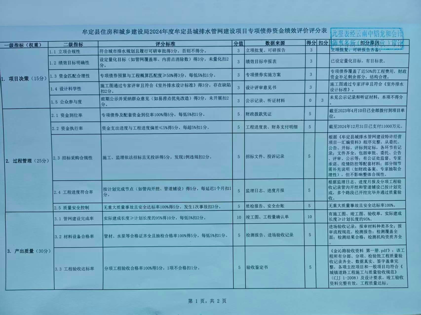 1.内涝点消除效果:评估项目实施后对历史内涝点的治理成效,反映排水系统实际改善程度。验证专项债券资金投入的直接效益,确保重点区域防洪排涝能力显著提升,保障城市安全运行。计划内涝点消除率100%得8分,每低10%扣2分。