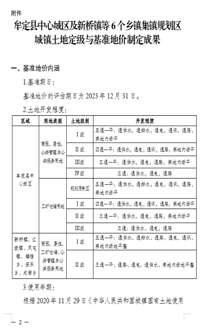 报经县人民政府批准,现将牟定县中心城区及新桥镇等6个乡镇集镇规划区城镇土地定级与基准地价制定成果予以公布,自公布之日起实施,原2020年公布实施的牟定县中心城区及新桥镇等6个乡镇集镇规划区城镇土地定级与基准地价测算成果同时废止。
