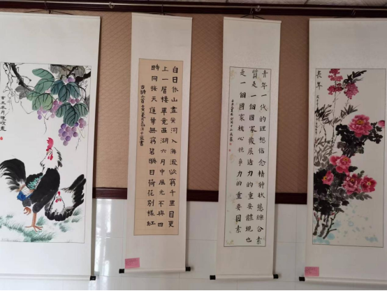 为迎接党的二十大胜利召开,牟定县文化馆联合天台中心小学师生,以“墨韵书香喜迎二十大,妙笔丹青同绘中国梦”为主题举办一期美术、书法展,来向伟大的中国共产党献礼!同时、也是为了贯彻落实教育部的“双减”政策和课后服务要求及牟定县教育体育局“走特色发展之路,全面推进特色学校建设”的精神,传承中华民族优秀文化,提高师生艺术素养,丰富师生校园文化生活,促进学校内涵发展,提升学校办学品位,学校以工会活动为依托,以课后服务为核心,紧紧围绕“知行合一,和雅润泽”的校风,重点以书法、美术、音乐、阅读等课程资源的开发为突破口,打造以“雅”为核心的“墨韵书香”文化特色。不断提升学生艺术情操,培养学生审美观念和审美能力,推进学校美育健康发展。本次展览共展出66幅书法、美术作品。