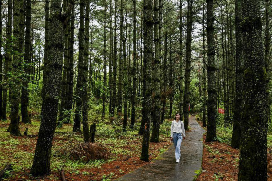 八、华山松林。化佛山之美,林深木秀是最大的特点。森林覆盖率98%,到处郁郁葱葱。有些地方密得树挤树,枝达枝,叶摞叶,清风难入,鸟雀难出,游人进入密林,抬头视天目,如同黑夜,但走进一颗颗一排排挺拔的华山松林,鸟瞰如同千军万马列队站,让游客瞬间精神抖擞,顿感心旷神怡,躺在厚如地毯的松叶上,听松涛阵阵,凉爽无比,惬意无比,似游仙境,是避暑的最佳胜地,是休身养性的好地方。