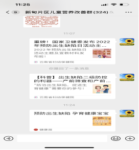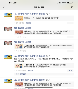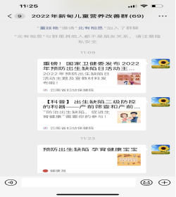 充分利用新媒体,在各种微信群、朋友圈转发有关出生缺陷的知识,让广大人群了解预防出生缺陷的知识,引导公众主动获取知识、接受服务,科学孕育健康新生命。